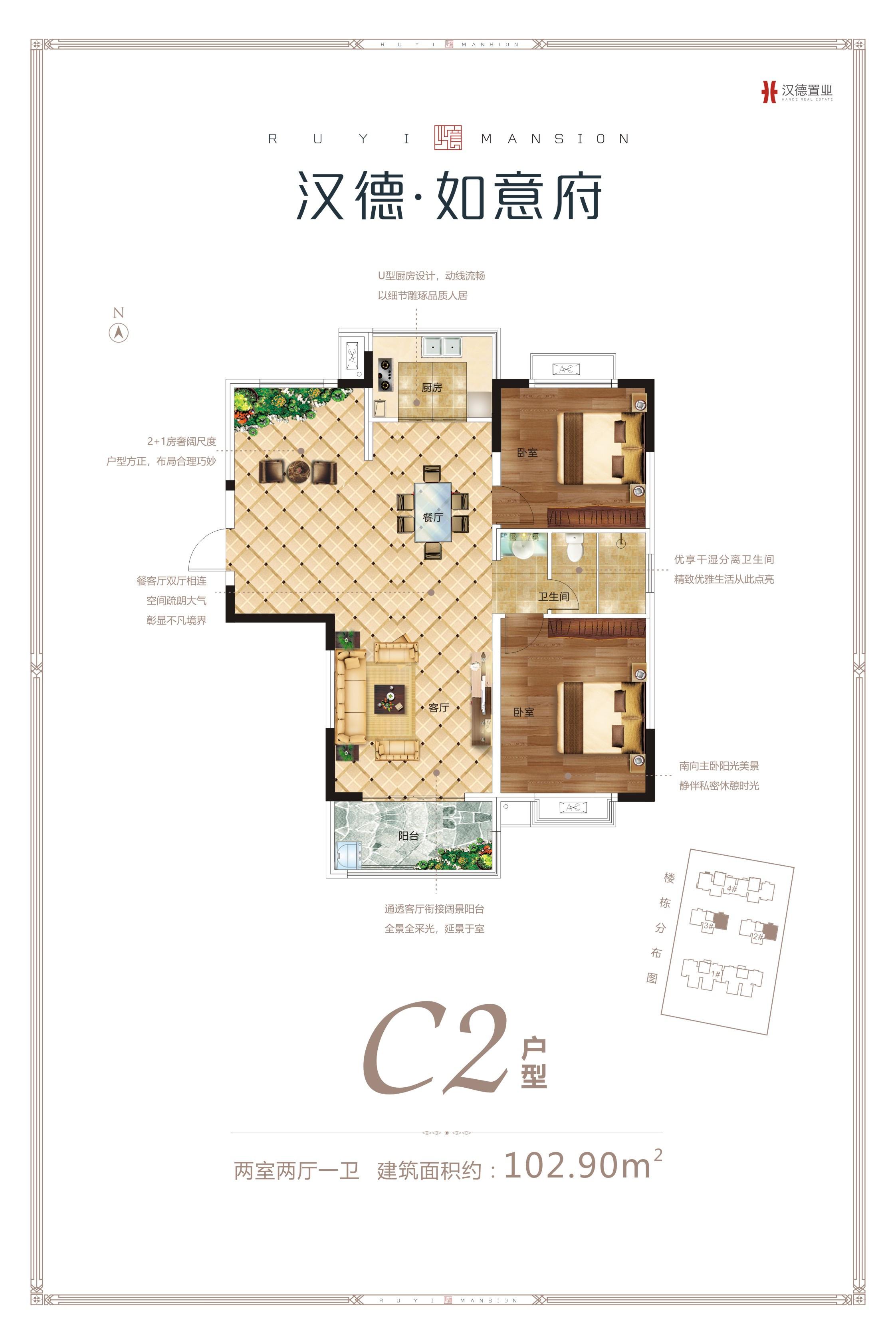 2室2厅1卫-C2户型-102.90㎡