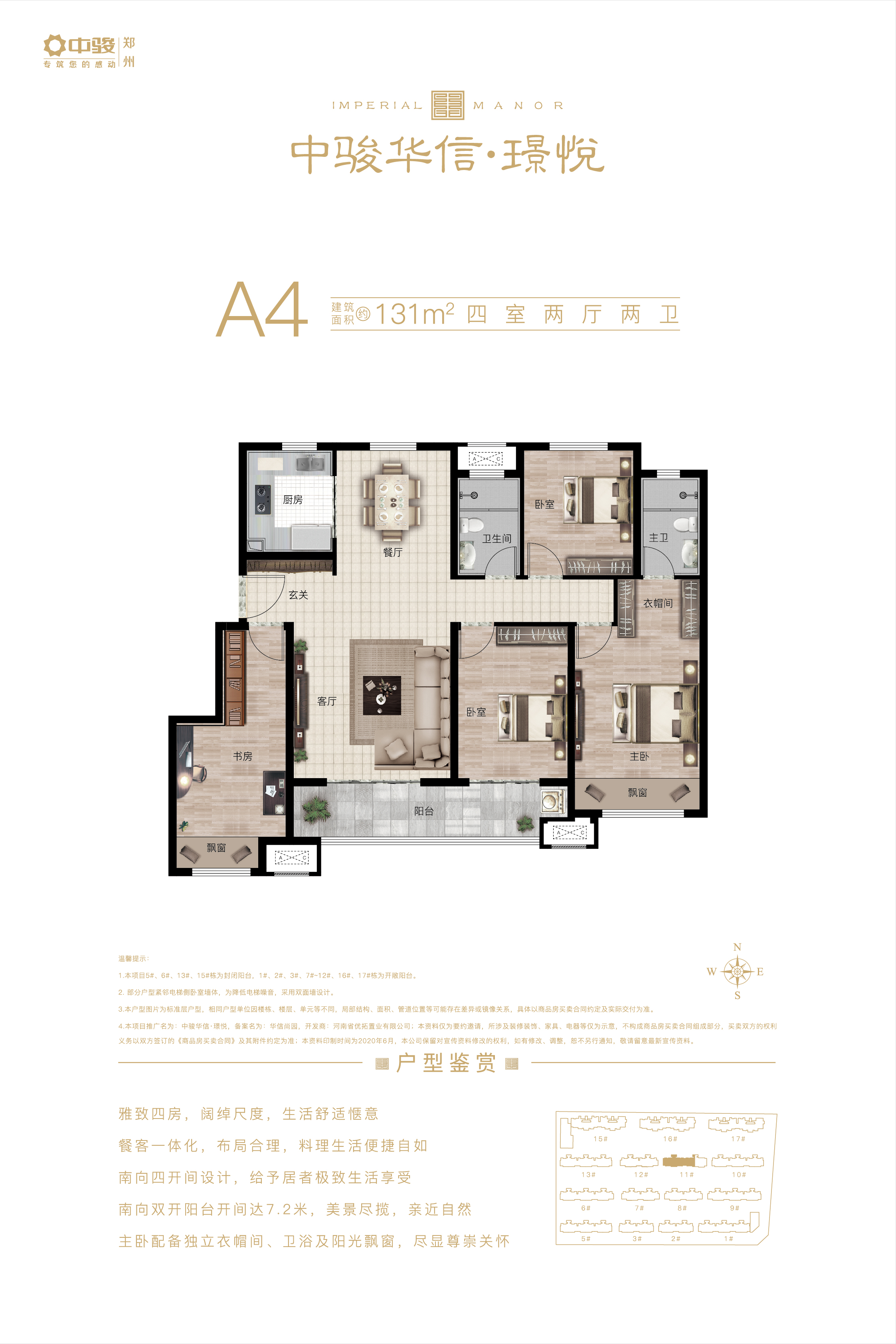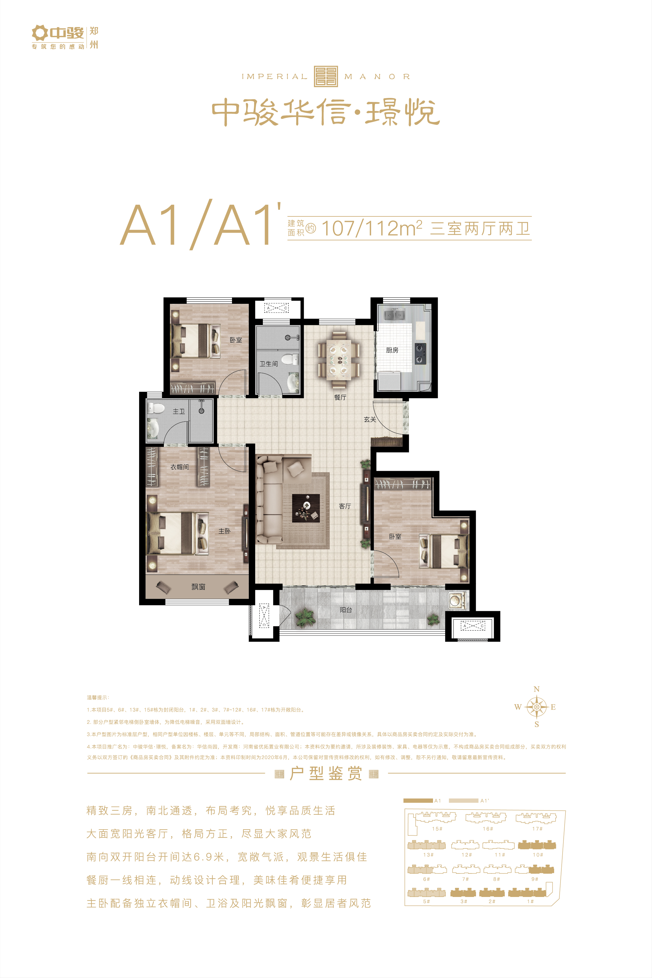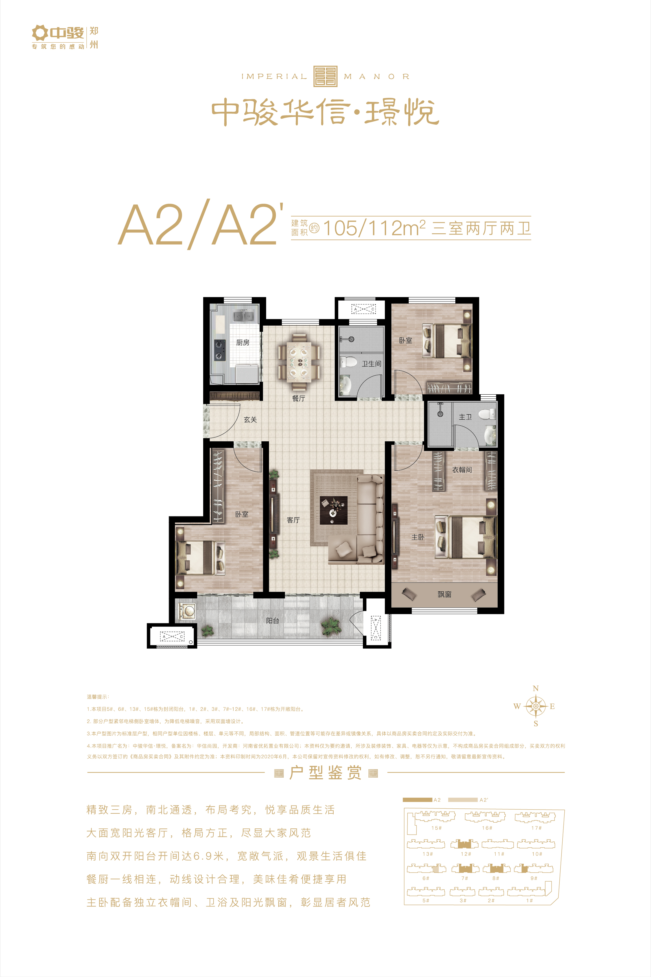 中骏华信·璟悦项目择址新郑市少典路与弘远路交会处东南角(崇文中学南侧),占据北部新区核心区位,项目总占地约45675.09平方米,总建筑面积约116722.85平方米,建筑密度22%,绿地率35.2%,容积率1.99,拟建设15栋楼,分别为12栋洋房,3栋高层,规划总户数842户,555个机动车停车位,洋房主力户型为108㎡三室两厅两卫、122㎡四室两厅两卫,高层主力户型为94.5㎡和100㎡三室两厅两卫,项目采用现代轻奢+新中式建筑风格,匠筑新郑精英人居典范。