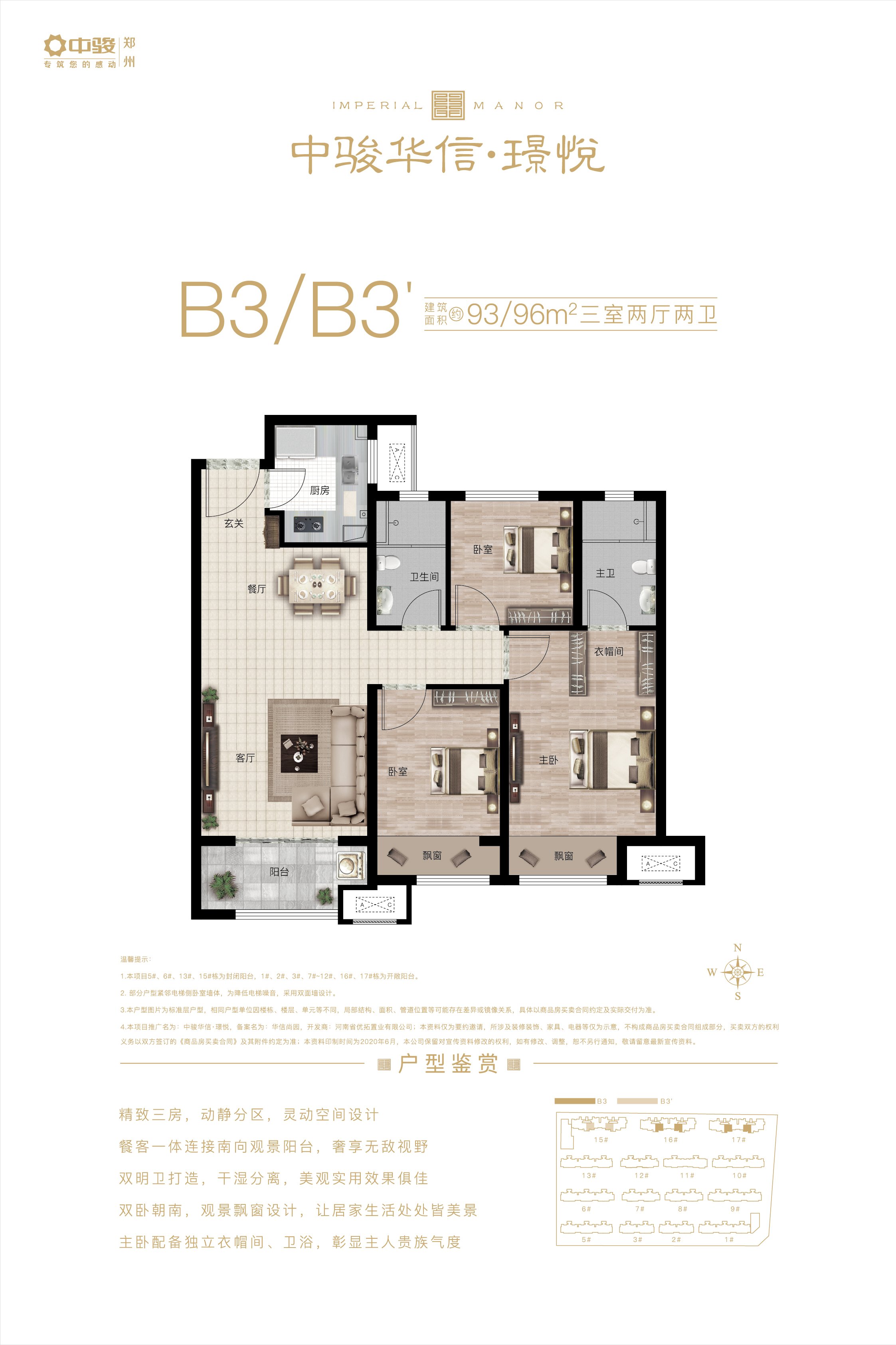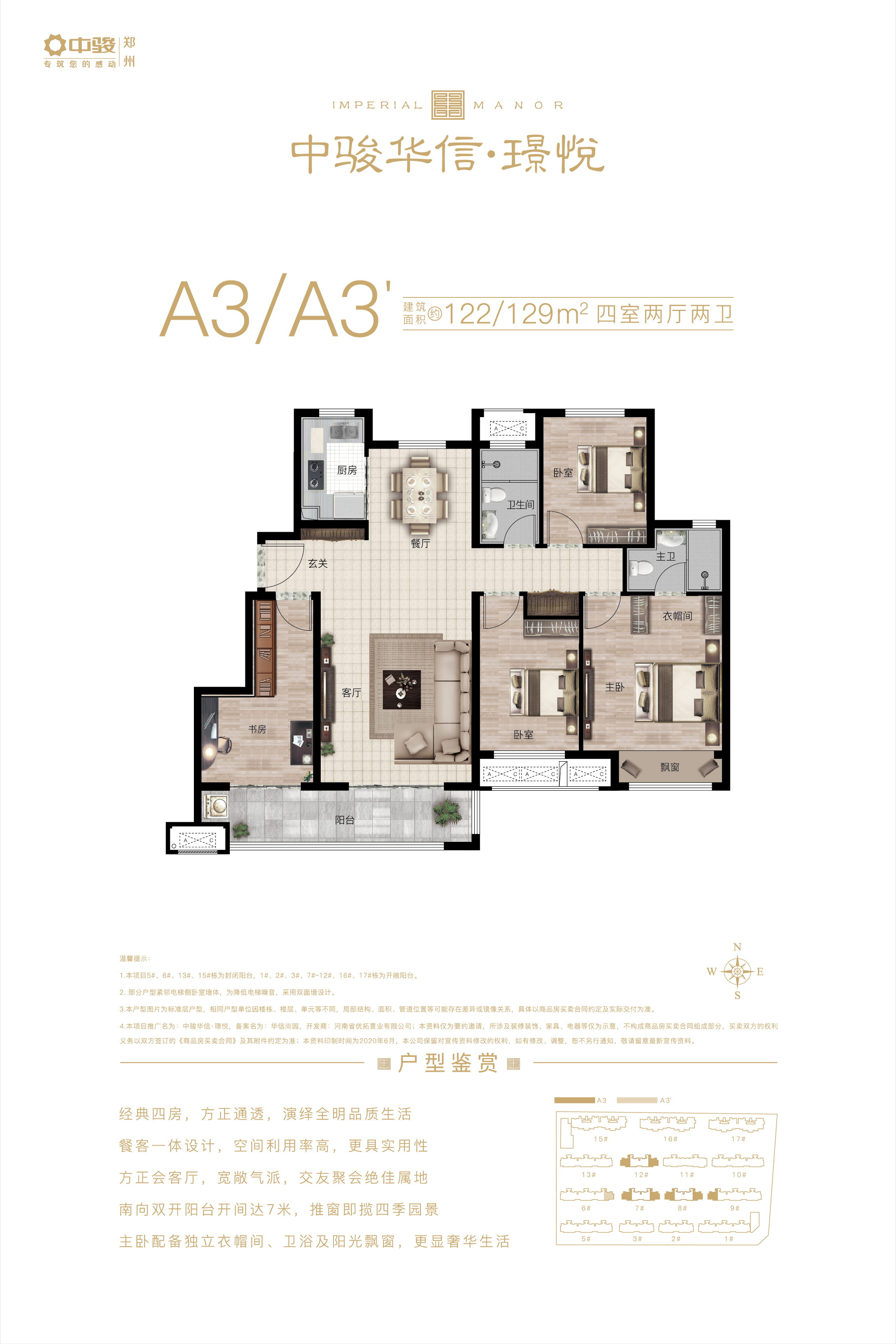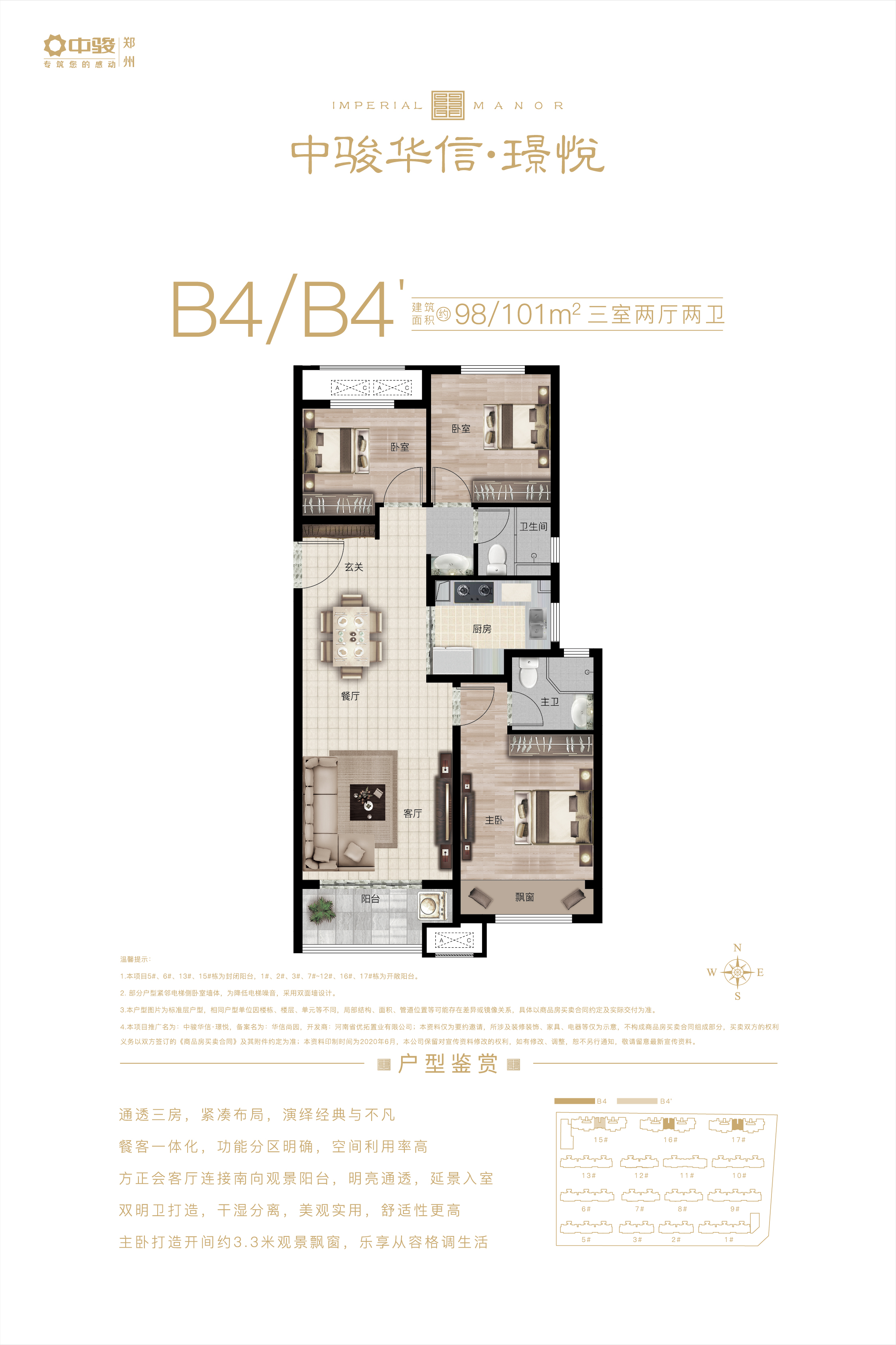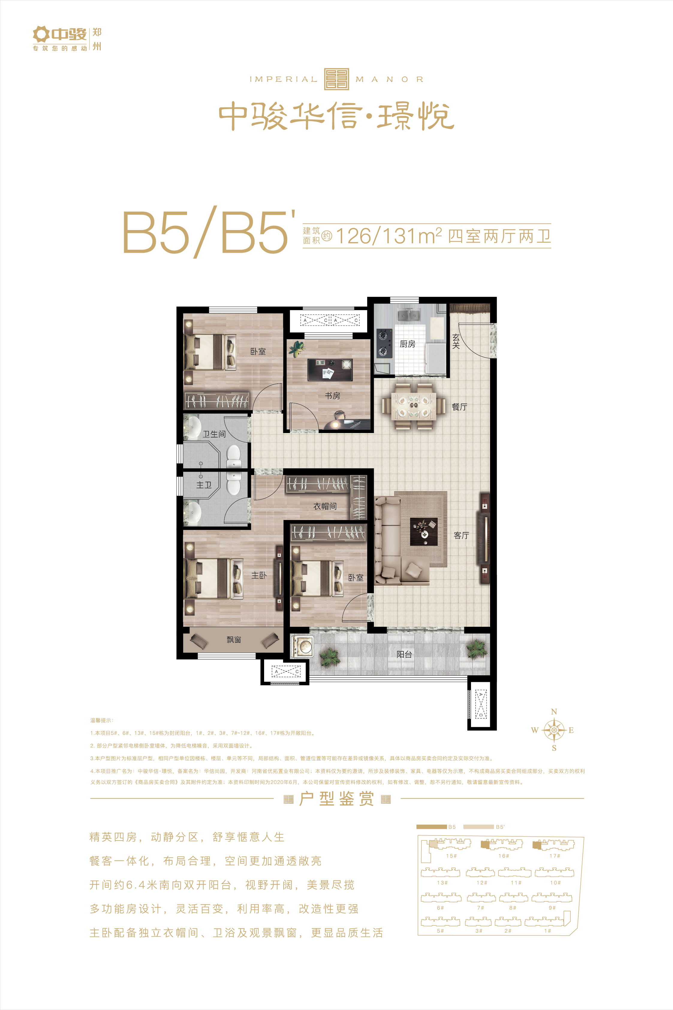 中骏华信·璟悦项目择址新郑市少典路与弘远路交会处东南角(崇文中学南侧),占据北部新区核心区位,项目总占地约45675.09平方米,总建筑面积约116722.85平方米,建筑密度22%,绿地率35.2%,容积率1.99,拟建设15栋楼,分别为12栋洋房,3栋高层,规划总户数842户,555个机动车停车位,洋房主力户型为108㎡三室两厅两卫、122㎡四室两厅两卫,高层主力户型为94.5㎡和100㎡三室两厅两卫,项目采用现代轻奢+新中式建筑风格,匠筑新郑精英人居典范。