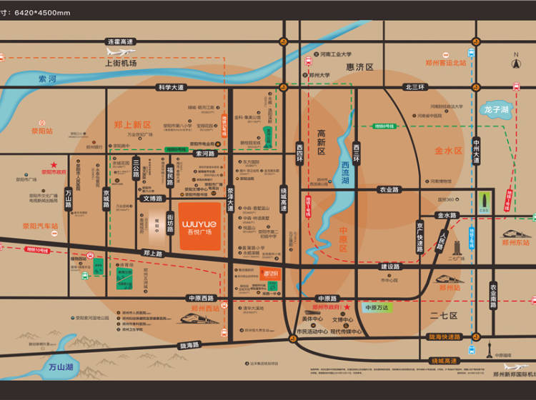 郑州荥阳吾悦广场择址荥泽大道与郑上路交汇处,距离郑州高铁西站仅3公里左右,向东约1000米即可驶入绕城高速,四纵三横路网构建立体交通;荥泽大道向北连霍高速与南向紧邻郑上路可直达郑州城芯;近距离地铁10号线(在建)、21号线(规划)。