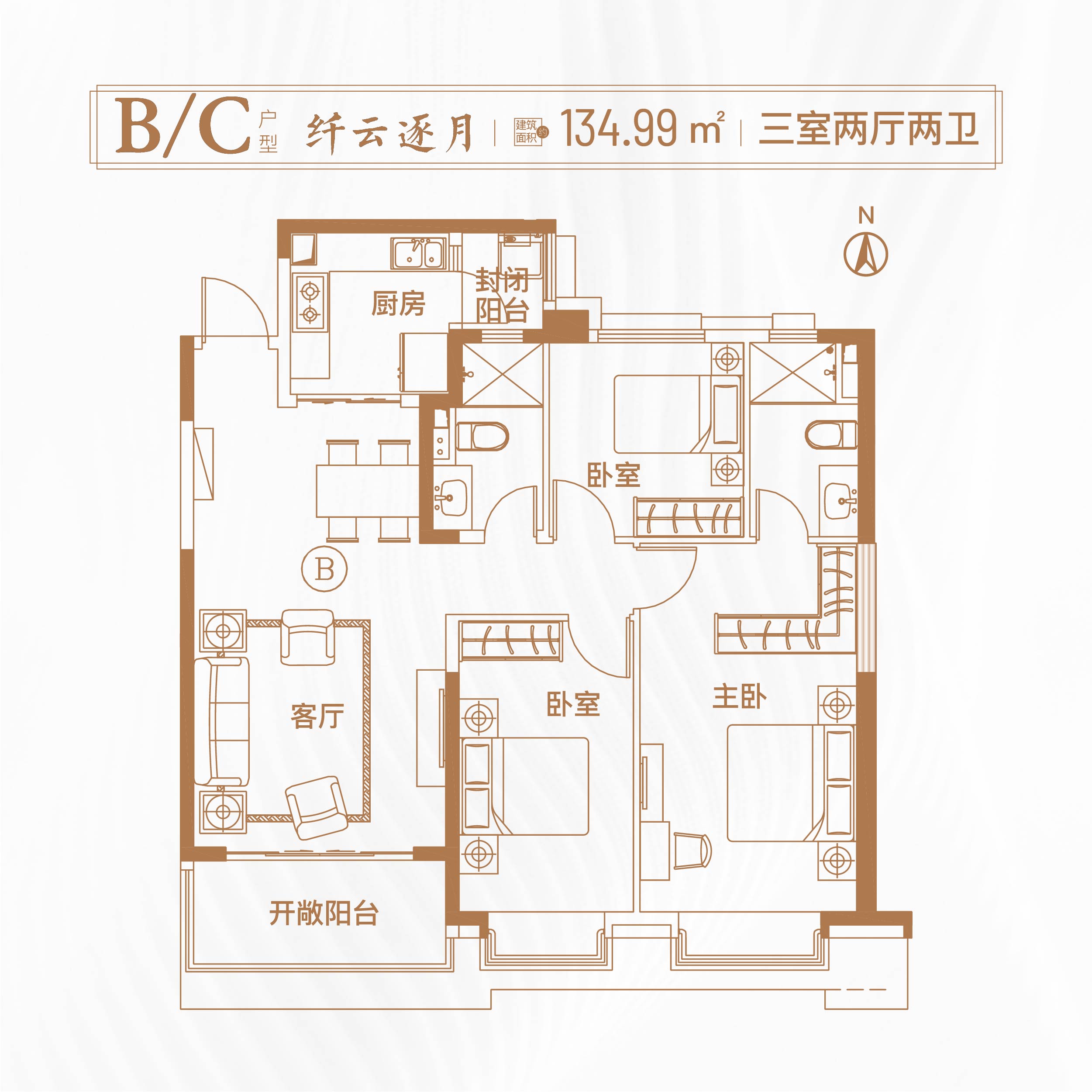 在售 户型方正 全明格局 主卧朝南 带衣帽间 主卧带卫