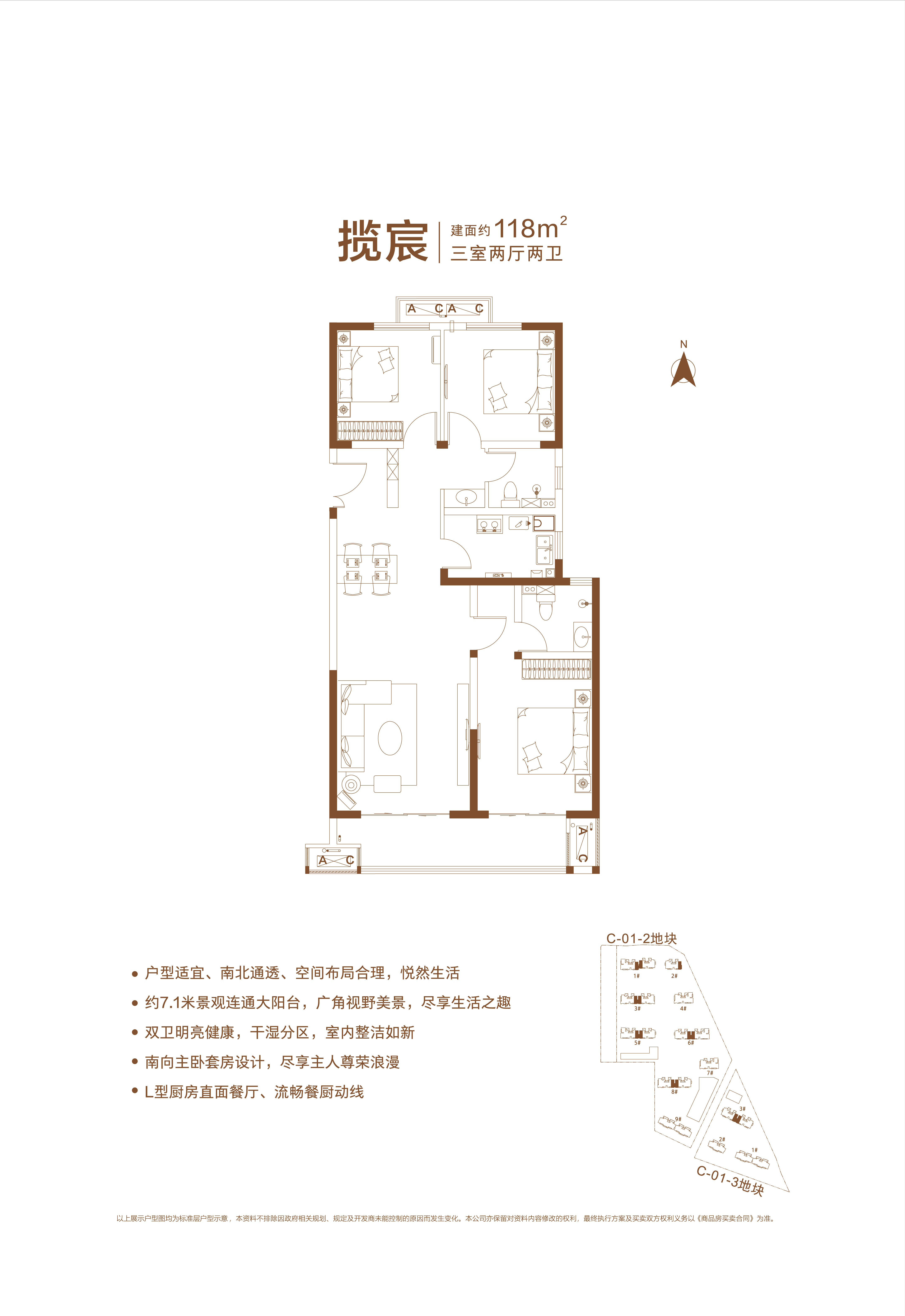 3室2厅2卫-揽宸-三室两厅两卫-118㎡