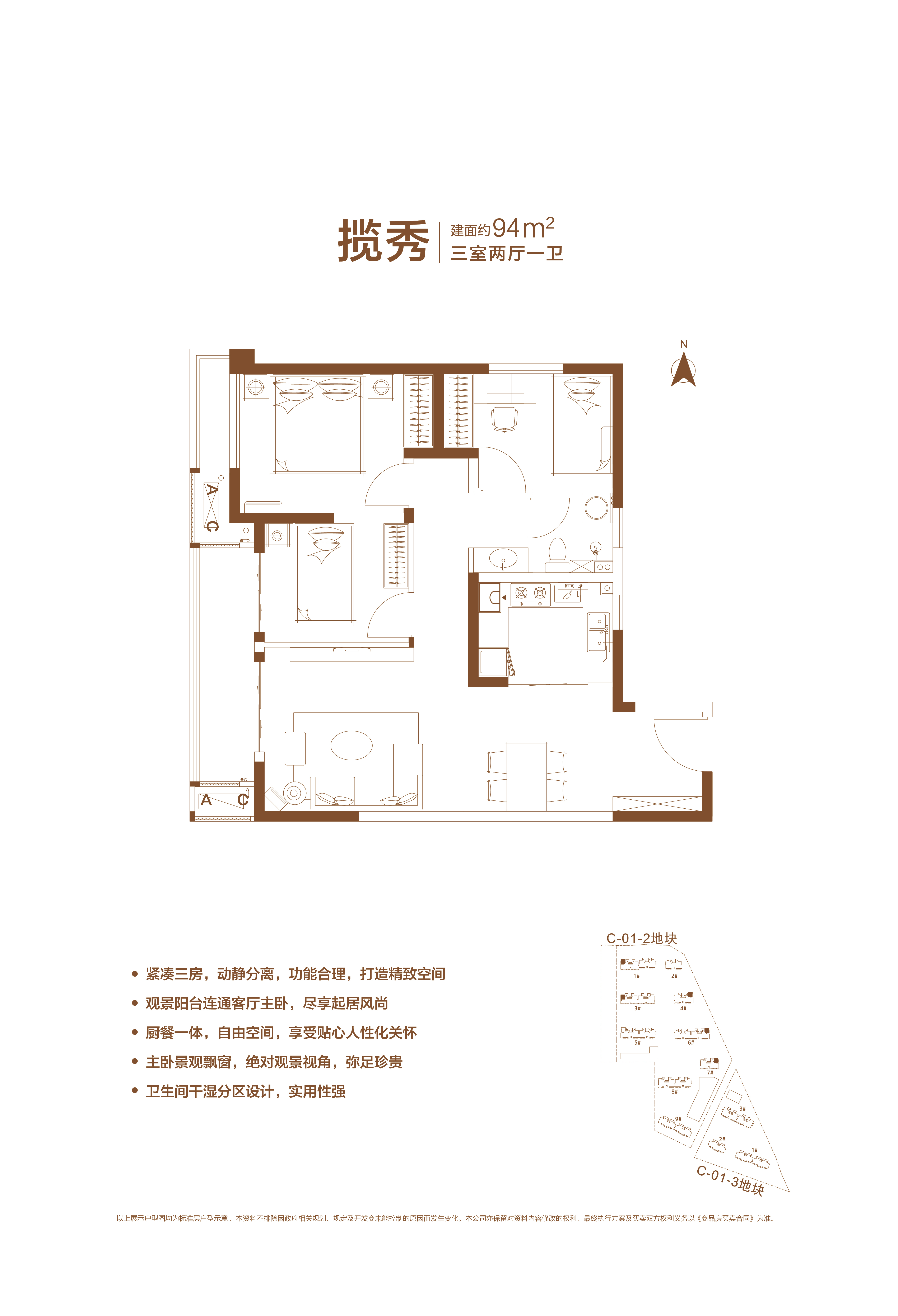 3室2厅1卫-揽秀-三室两厅一卫-94㎡