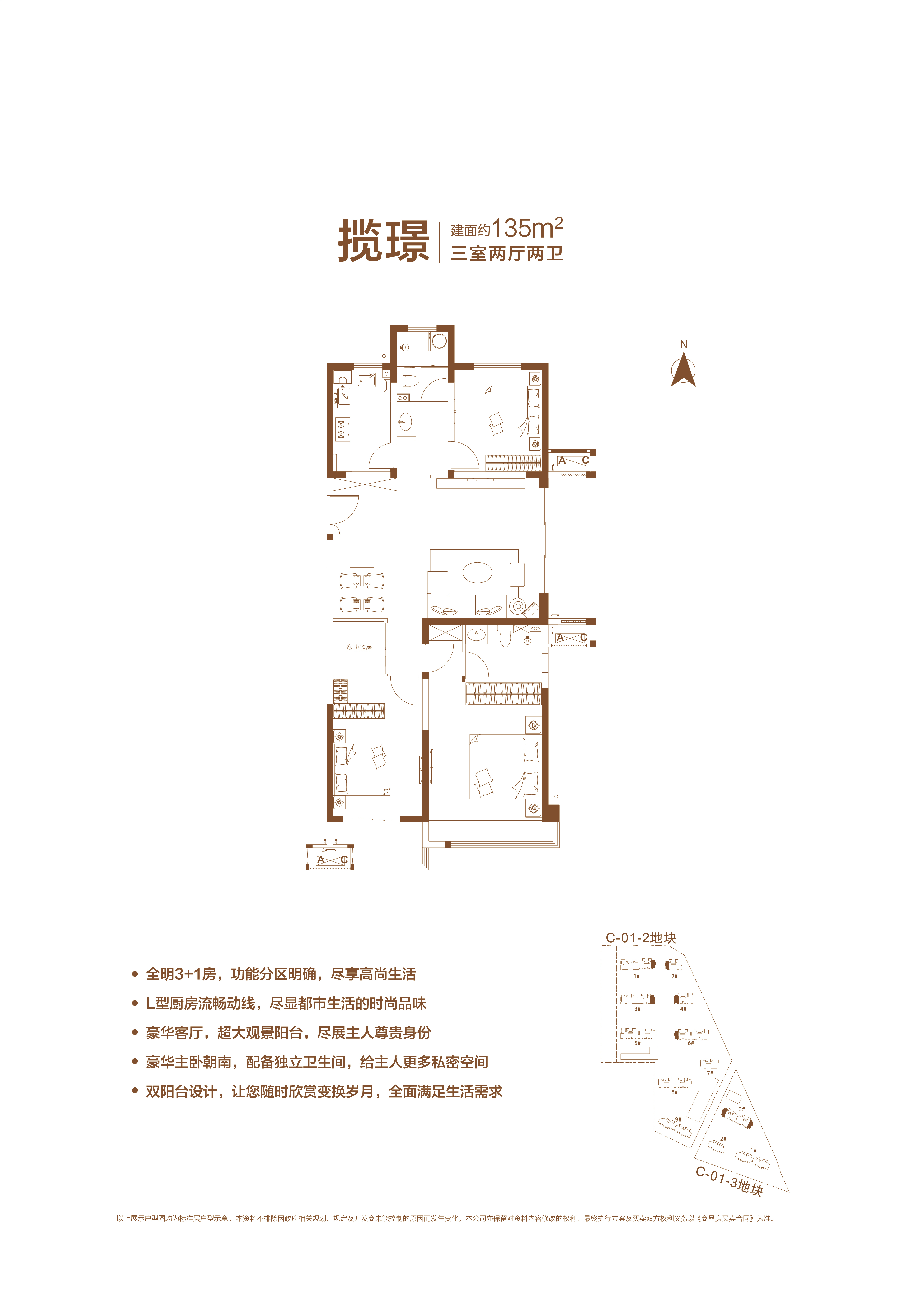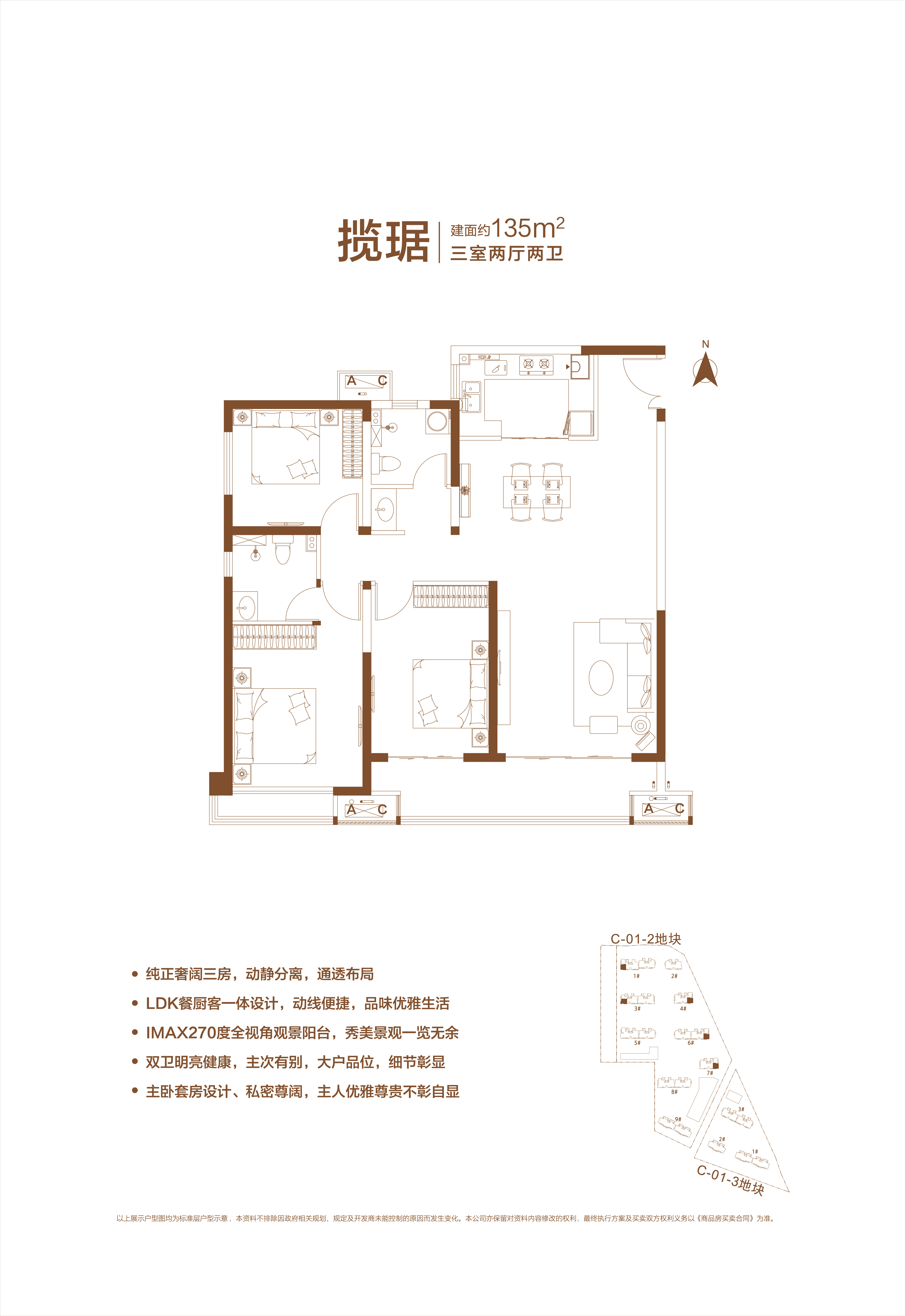 3室2厅2卫-揽璟-三室两厅两卫-135㎡