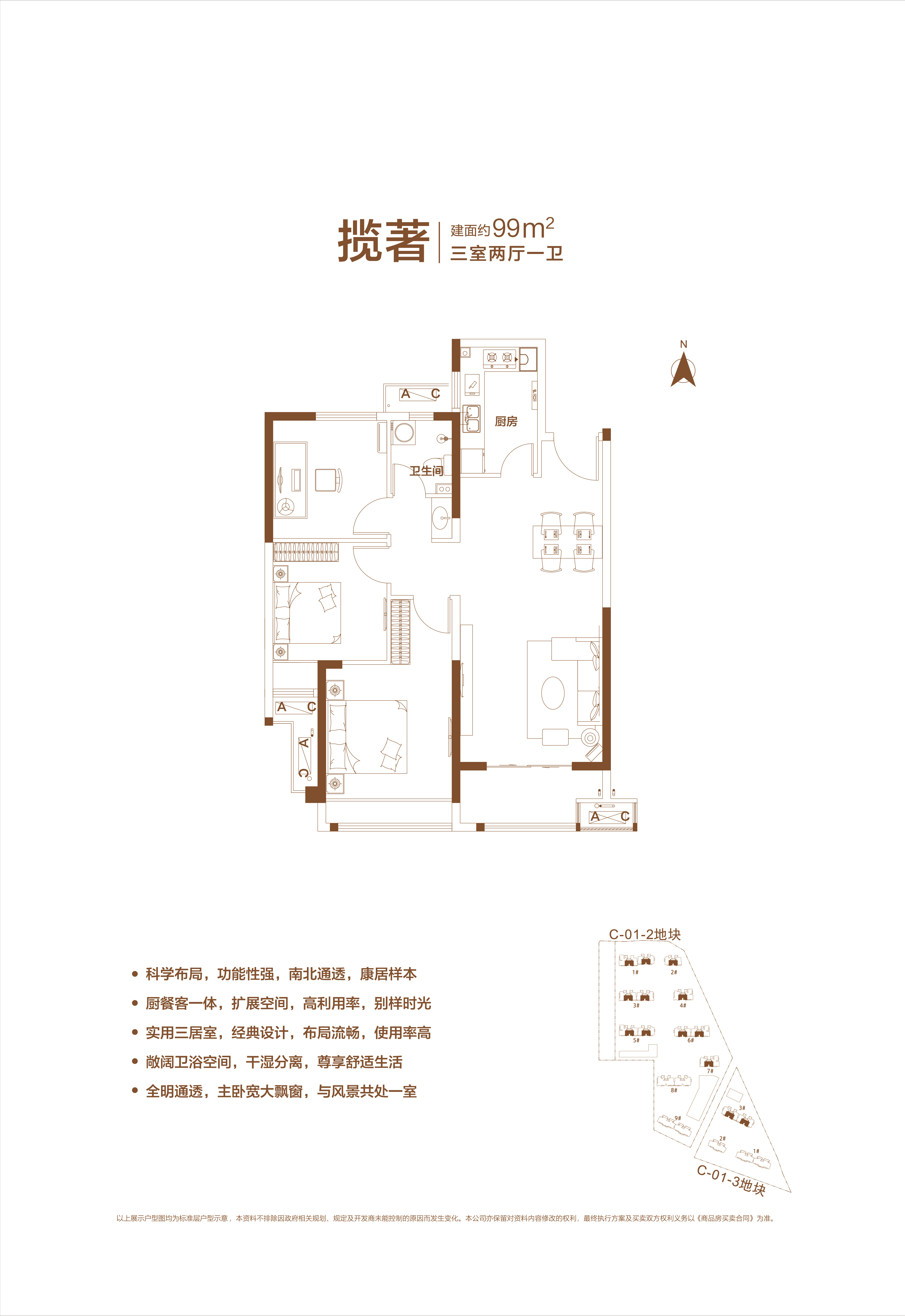 3室2厅1卫-揽著-三室两厅一卫-99㎡