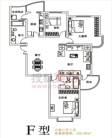 3室2厅2卫-兴东龙腾盛世 F型三房两厅两卫 152.32㎡