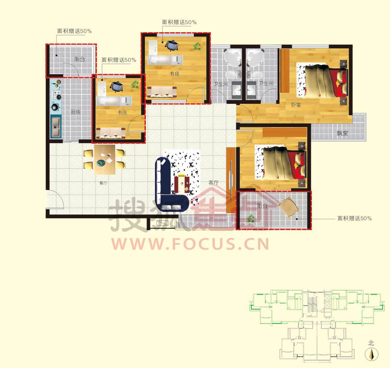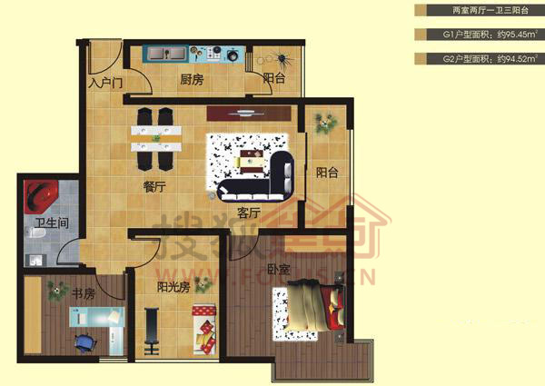 康城棕榈泉以二房和三房为主,在80平方到140平方之间,复式基本上比较少。