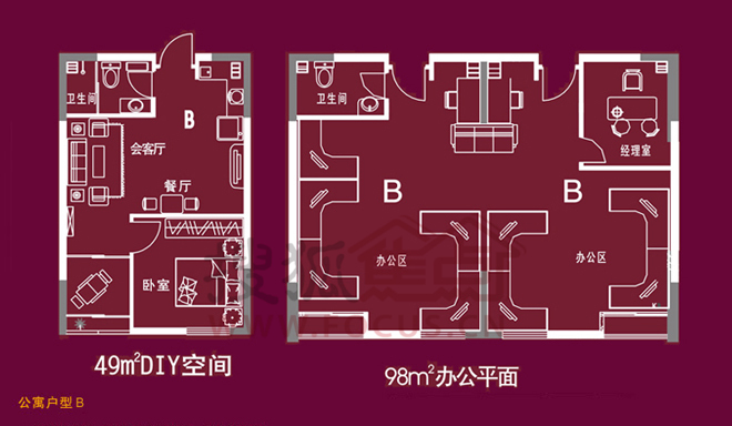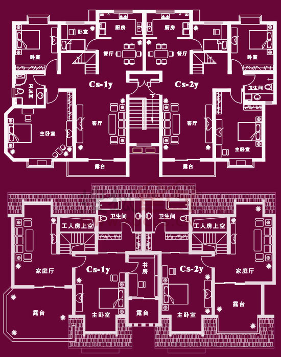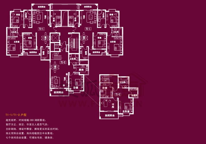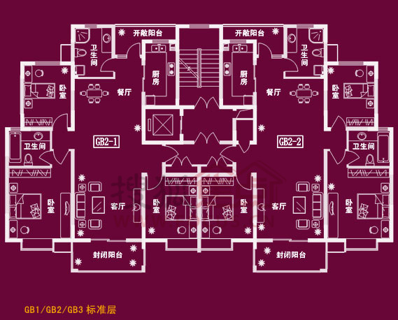 主要户型为:小户型,分为一居室,二居室,三居室,四居室,复 式。