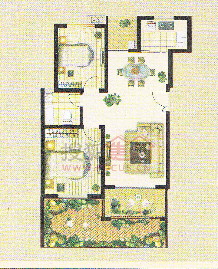 2室2厅1卫-龙湖御景花园洋房两室两厅一卫93㎡户型