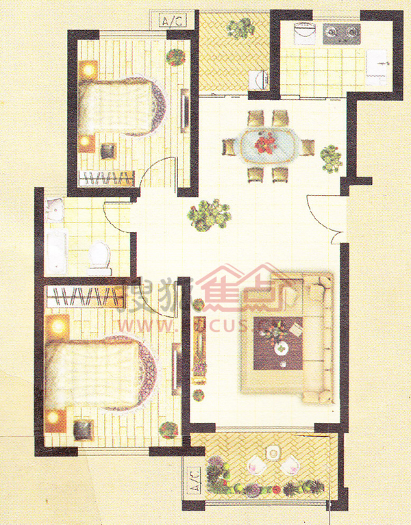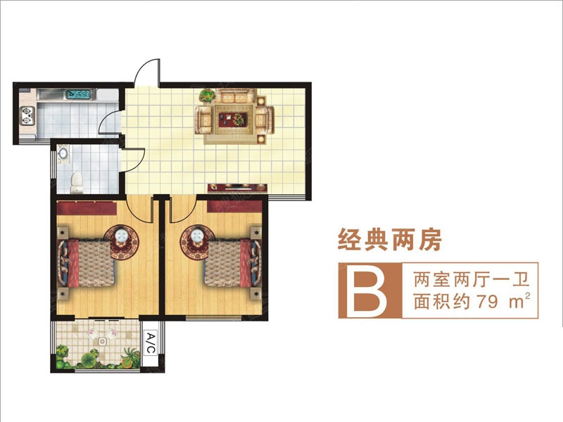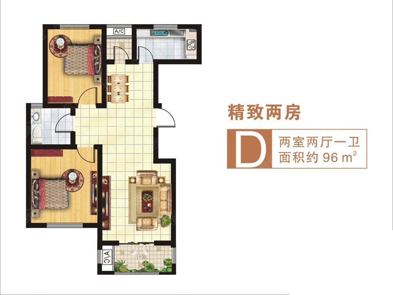 2室2厅1卫-龙湖御景 两室两厅一卫 93.59平米 A户型