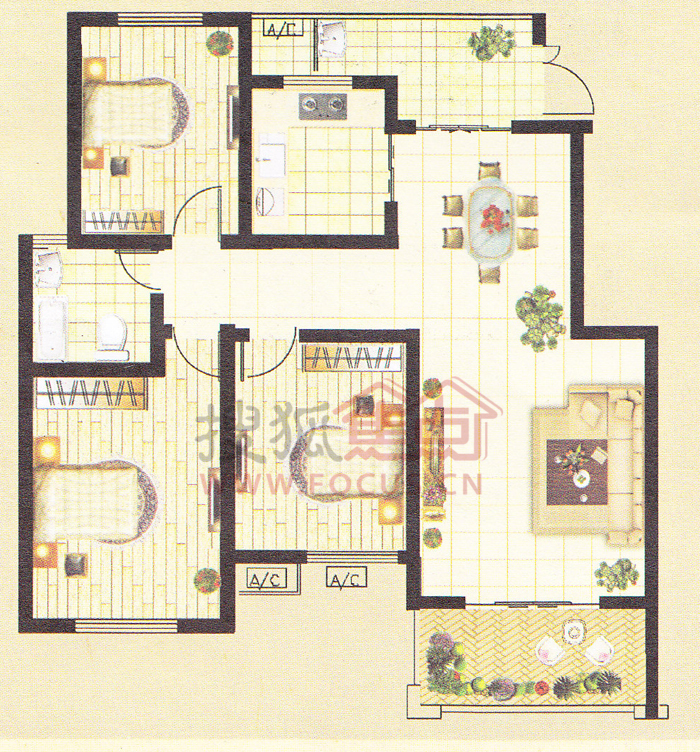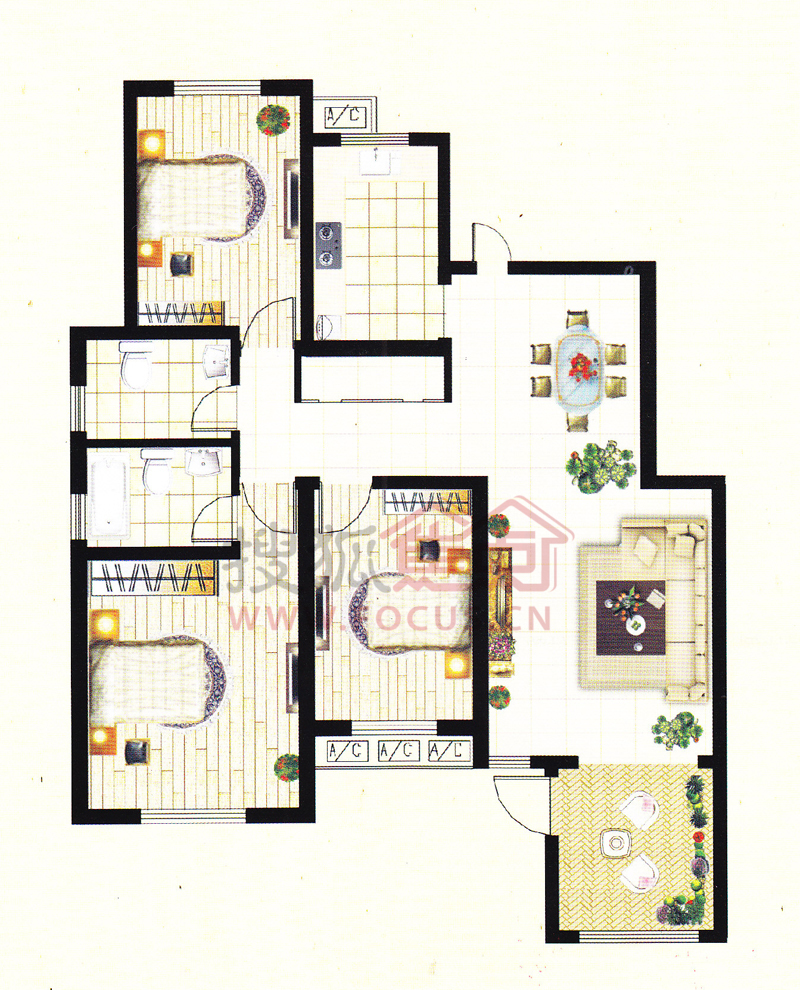 3室2厅2卫-龙湖御景 三室两厅两卫 137平米 D户型