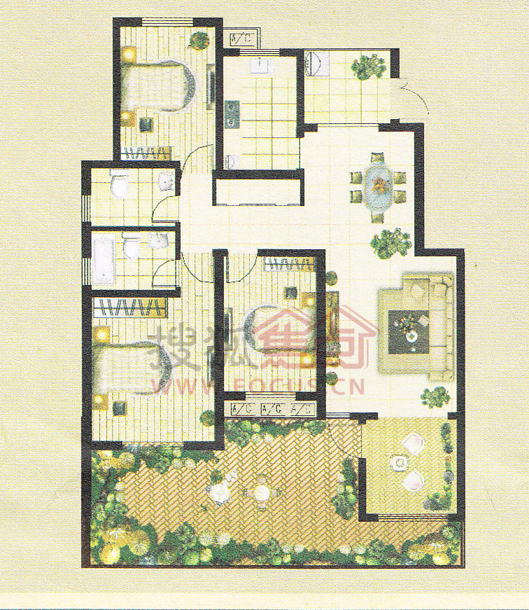 3室2厅2卫-龙湖御景 三室两厅两卫 133平米 F1-A户型