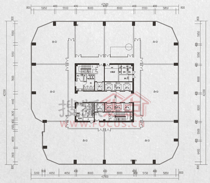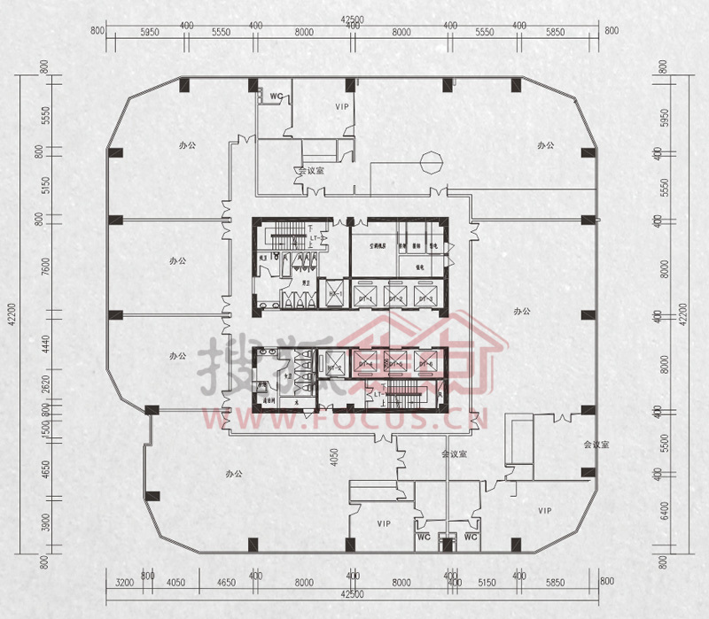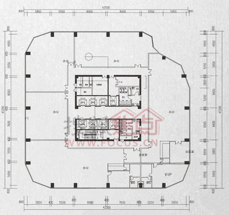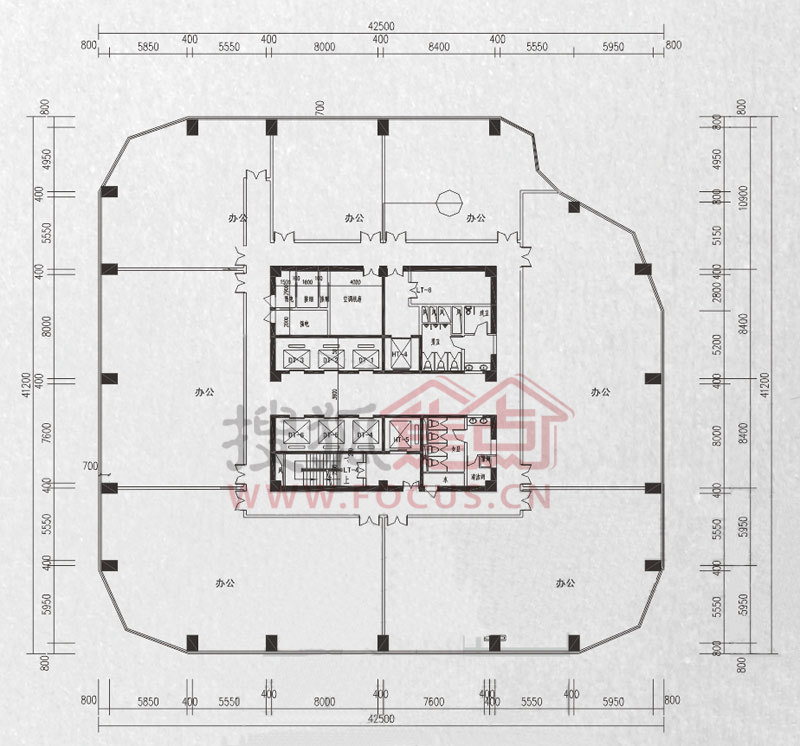 0室-东侧建筑标准层(高区)平面图 约3373㎡户型
