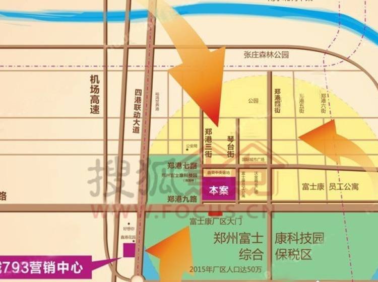 港城793位于郑州航空港区郑港九路与郑港三街交汇,世界五百强第60位的富士康在郑州的较大厂区E厂区少有的出入口就在本项目的正对面,周边项目也都是为富士康50万员工(目前18万)定向服务的配套项目,从机场高速口沿四港联动大道至保税北路右拐约2公里即可到本项目,目前港城793周边都在施工建设阶段,部分的配套商业都是临时建筑,随着大量富士康员工的入住使得周边的商业租赁市场非常活跃,租金也相当昂贵,已大大超过了郑州市区繁华路段,随着航空港区的建设、富士康郑州厂区的发展,投资本项目必定升值潜力无限。