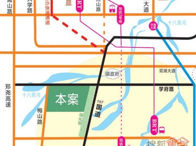 551路、552路、553路、556路、567路、569路龙湖小乔站下即到。东侧郑新快速通道即将通车,西侧大学南路延伸至龙湖,南侧为新老107连接线,北侧2公里即为高速入口,入口8分钟可从嵩山路候寨站下至嵩山路,15分钟可从航海路入口下站至东区。地铁2号线二期工程从花寨路直接延伸到龙湖,未来还有轻轨,城际铁路等京沙快速通道二期延线直达龙湖。