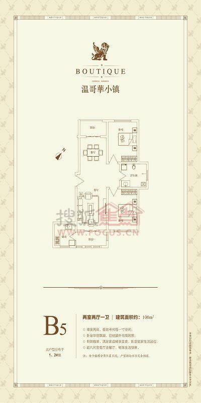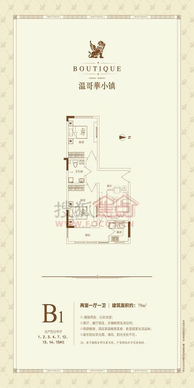 2室1厅1卫-温哥华小镇B1两室一厅一卫79平米