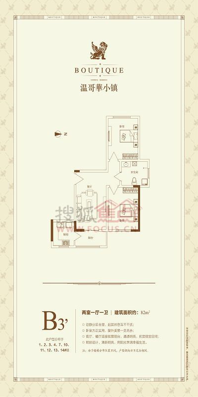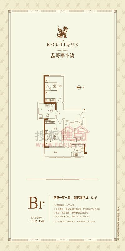 2室1厅1卫-温哥华小镇B3,两室一厅一卫,82平米