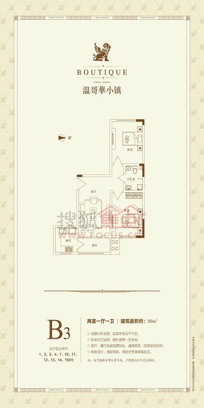 2室1厅1卫-温哥华小镇B3两室一厅一卫80平米
