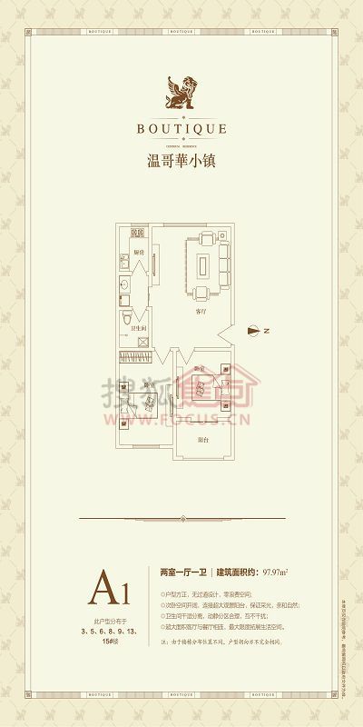 2室1厅1卫-温哥华小镇A1两室一厅一卫97.97平米