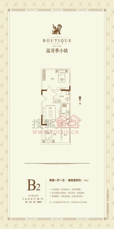 2室1厅1卫-温哥华小镇B2两室一厅一卫74平米