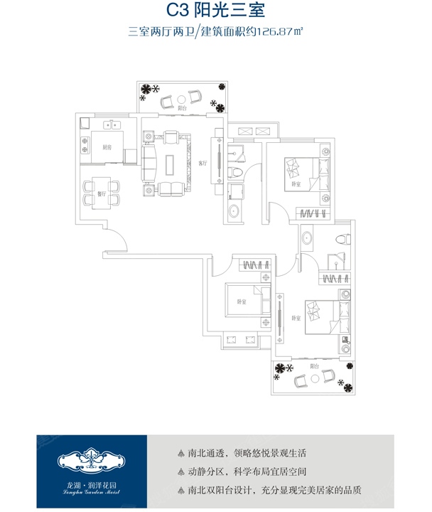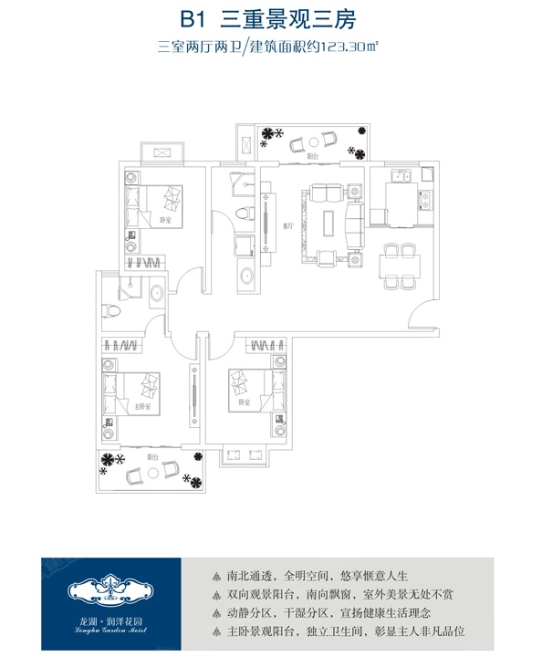 3室2厅2卫-龙湖润泽花园景观三房户型图