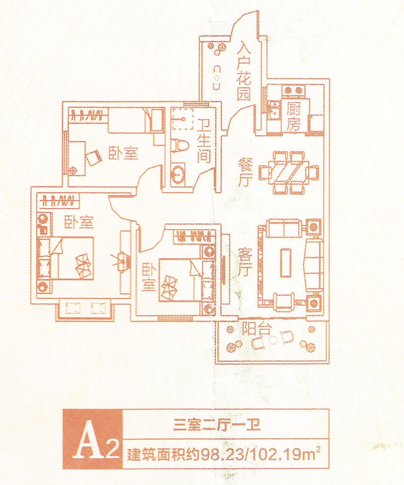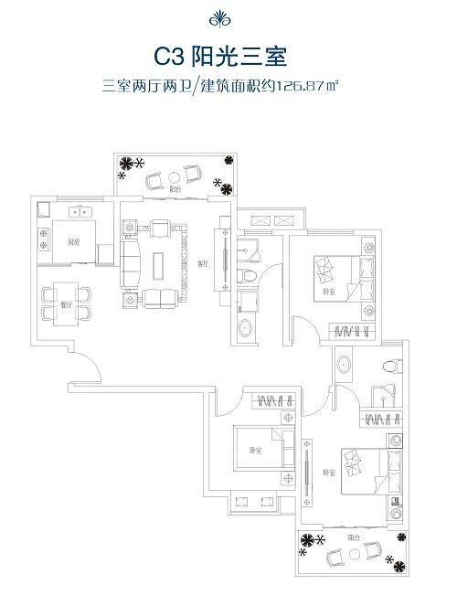 3室2厅2卫-龙湖润泽花园阳光三室户型图