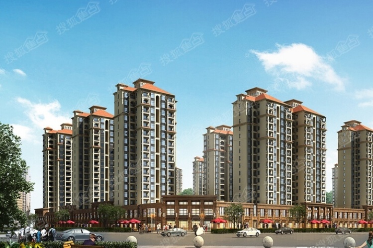 新嘉苑小区建筑采用简欧式建筑风格,简单大方,不失大家风范,建筑色彩以清新典雅为主。底部商业采用干挂石材,预留广告位及醒目灯光设计。
