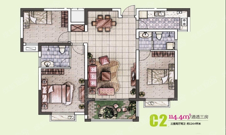 新嘉苑住宅两梯四户或两梯三户,全明通透户型设计。小区共有三个出入口,东侧和南侧为主出入口,西侧为次出入口。南出入口进来是一个圆心的大广场,业主平时可以在里面娱乐及休闲。小区的车位分地上和地下两部分,地下1573个,地上175个,可完全满足小区业主的需要。