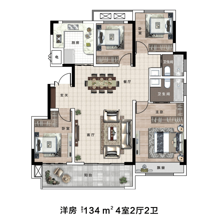 三开间朝南·客餐厅连南向观景阳台·全明双卫·通透方正,一经推出,即受到客户的追捧。