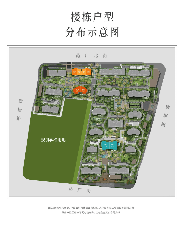 项目规划为纯粹的住宅社区,以高实用率、舒适梯户比和静谧体系为核心,专注于满足改善家庭的居住需求。