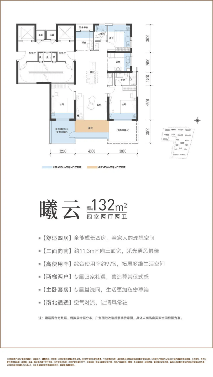 高实用率设计:户型使用率至高可达118%,在132㎡至229㎡的面积区间内,通过优化设计为业主拓展了更多可利用空间。