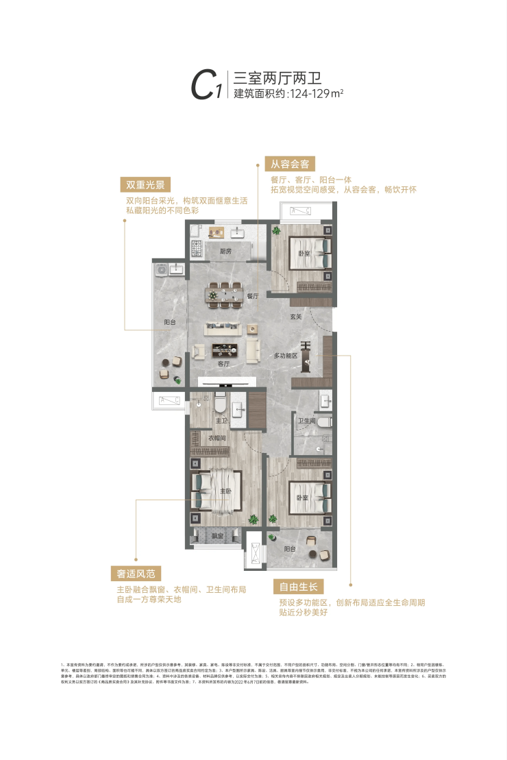 项目主力产品为建筑面积约98㎡至180㎡的精装小高层,以“成品改善住区”为标准,全面考量当代家庭的居住升级需求。