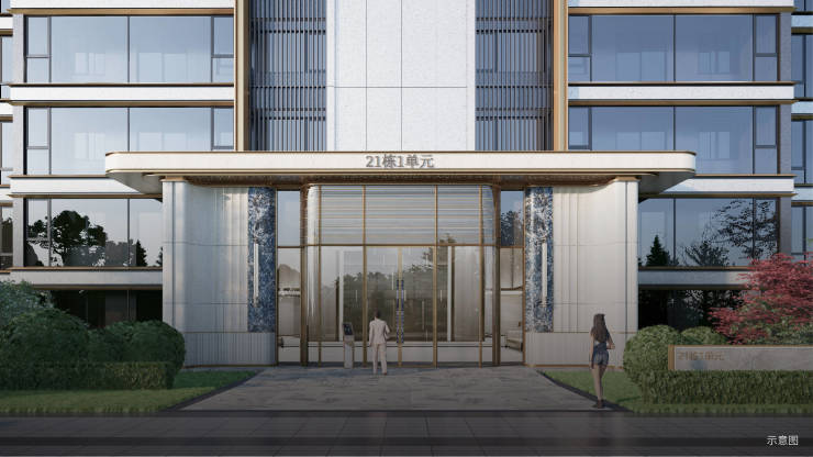 奢阔尺度门庭,星空穹顶、羽毛枫造景,精选海浪灰、古铜金等色彩,立新城市门面。