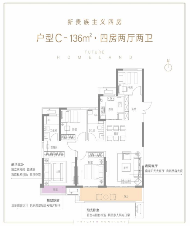 功能完备的舒适四房,专设北向安静书房,满足居家办公与学习需求,适合多代同堂家庭。