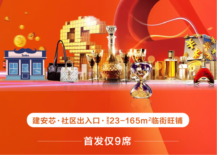 约23-165㎡沿街商铺,位于社区出入口,内外客流双向汇聚,聚揽财富。