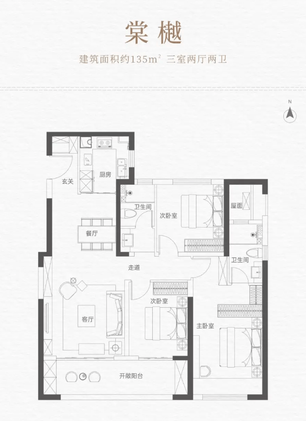 建面约135㎡ “棠樾” 三室两厅两卫