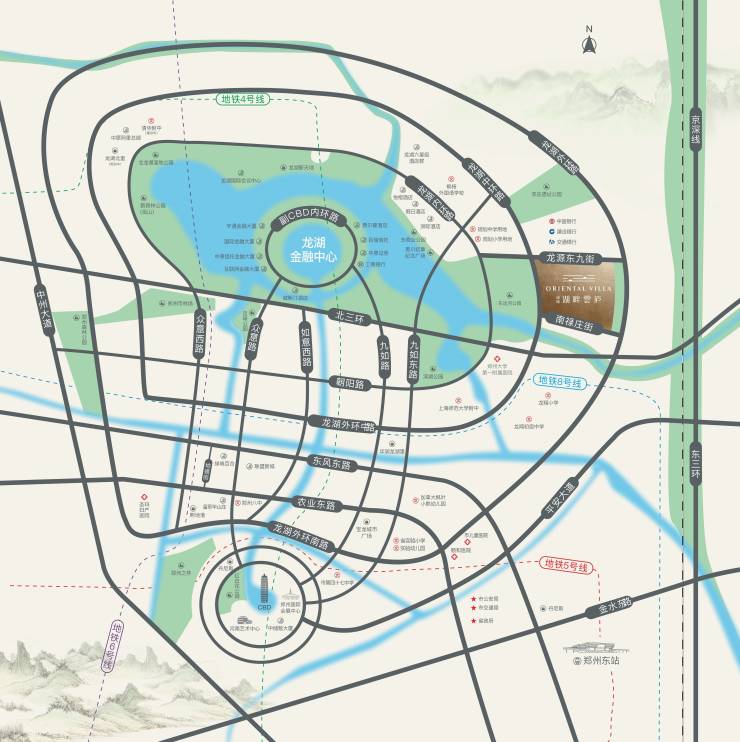 【绿城·湖畔雲庐】区位:作为郑东新区的金字招牌,龙湖区域将打造多重立体交通体系,分别是地面交通、地铁、水上交通及穿湖隧道。距离项目最近的就是地铁8号线(郑大一附院站),项目紧邻北三环、东三环出行十分方便