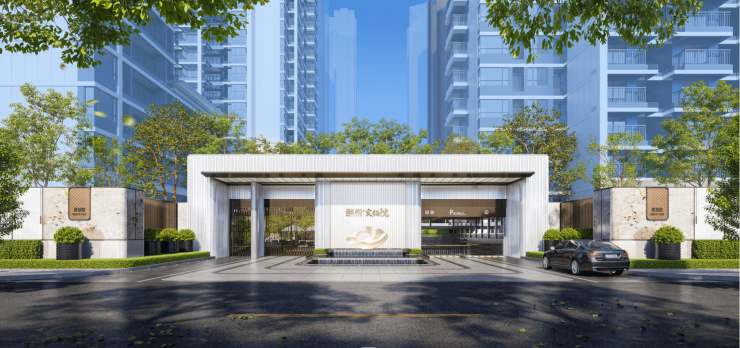 【朗悦·宸栖院】以精奢、酒店、艺术为基调,住宅造型采用现代简约风格设计,提取宝格丽时尚品牌中的元素,打造都市精奢酒店式住宅,塑造都市美学新风尚,酒店式归家大堂,破除酒店与宅院的界限,外立面底部局部高档石材+外墙涂料,灰色外墙搭配米白色宽景阳台,线条简练,凸显现代美感,整体展现了轻奢臻境的自然森居。为都会新青年打造一方隐匿于闹市的精奢生活。