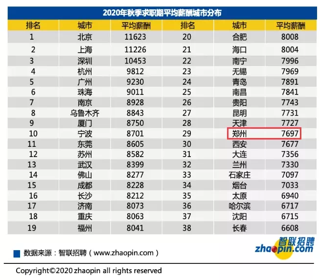 郑州平均工资7697元/月!
