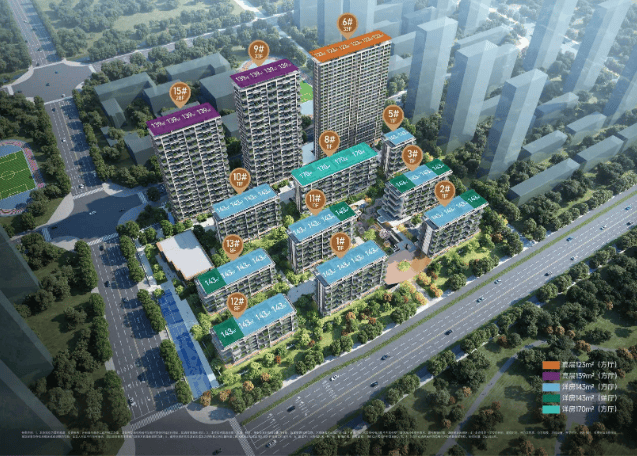 项目提供高层123-139㎡及洋房143-170㎡两大产品线,均以创新的四代宅设计、极高的得房率和一线河景为核心价值。