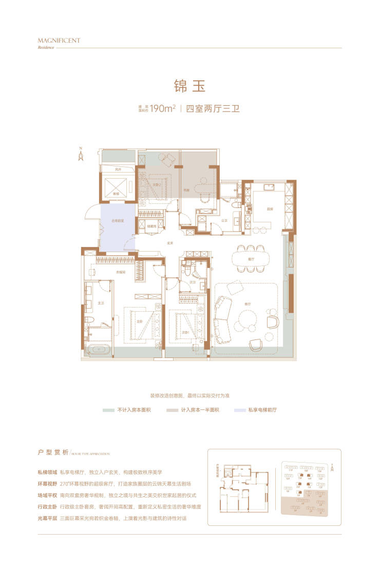 1、本资料仅为要约邀请,不视为要约或承诺,买卖双方的权利及义务以双方签订的《商品房买卖合同》及附件、实际交付为准; 2、所涉面积均为建筑面积,所载文字及相片、地图、示意图、标注图片等仅供参考用途。部分配图及字体来源于网络,相关版权归原作者所有,如有侵权,请联系删除,谢谢; 3、本宣传资料中的学校为政府规划学校,办学机构及开学时间、学区划分教学规模等以政府教育主管部门最终文件为准,开发商对此不做承诺; 4、户型展示均为“标准层”户型展示;本宣传资料所涉及的户型仅供示意参考,其装修、家具、陈设等非交付标准,不属于交付范围。不同户型的面积尺寸,功能布局,空间分割、门窗、管井形态位置等均有不同;相同户型因楼栋、楼层、单元等差别,局部结构、面积等也可能不同,具体以政府部门最终审定的图纸和买卖合同为准。 5、本资料图片及文字介绍旨在提供相关信息,不意味本公司对此作出了任何承诺;本资料相关配套、交通等信息介绍,不排除后续因政府规划、规定及设计方案的调整而导致变化,本公司有权做出细部调整,不再另行通知;本资料2025年8月启用,有效期6个月,本公司保留对本资料修改的权利且不再另行通知。本项目推广案名为【绿城·郑州春月锦庐】,核准地名为【春月锦庐】,开发商【河南绿波置业有限公司】。