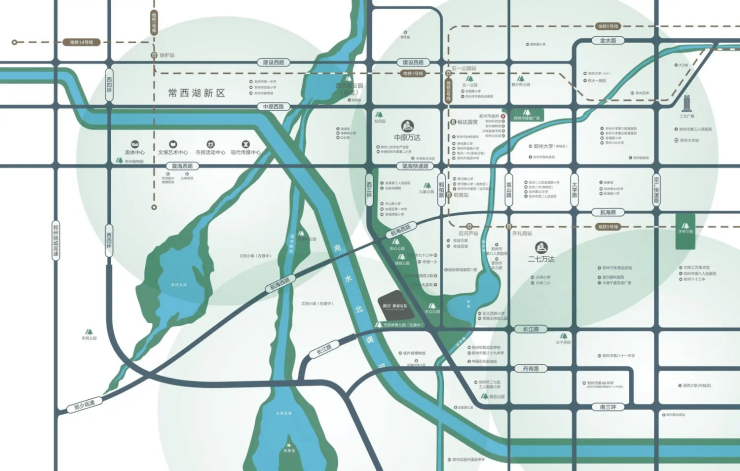 四区交汇:项目立足中原区与二七区双主城腹地,同时前瞻常西湖新区与凤湖智能新区双新区发展势能,尽享成熟配套与发展潜力的双重赋能。