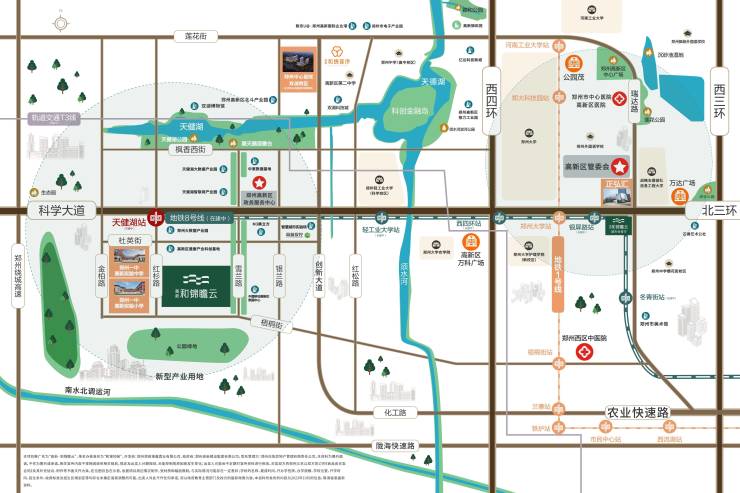 本项目推广名为“高新·和锦瞻云”,地名办核准名为“和锦知苑”,开发商:郑州郑高锦鑫置业有限公司,投资商:郑州高新建设集团有限公司,受托管理方:郑州信筑房地产管理有限责任公司。本资料为要约邀请,不作为要约或承诺。相关宣传内容不排除因政府相关规划、规定及出卖人分期规划、未能控制等原因而发生变化;出卖人可能会不定期对宣传资料进行修改。买卖双方的权利义务以双方签订的《商品房买卖合同》及其补充协议、附件等书面文件为准。区位图仅旨在示意,依据项目周边情况制作,受材质和幅面限制,与实际情况可能存在一定差异;学校的名称、建成时间、开办学性质、办学规模、学校位置、开学时间、招生条件、收费标准及招生区域划定等均存在未确定或者调整的可能,出卖人对此不作任何承诺,须以政府教育主管部门及校方的最新政策为准。本宣传资料所涉及的户型仅供示意参考,其装修、家具、陈设等非交付标准,不属于交付范围。不同户型的面积尺寸、功能布局、空间分割、门窗/管井形态位置等均有不同。相同户型因楼栋、楼层、单元等差别,局部结构、面积等也可能不同,有消防要求的房间则按消防要求设置门窗,具体以政府部门最终审定的图纸和销售合同为准。本资料所发布的内容为2023年10月的信息,敬请留意最新资料。