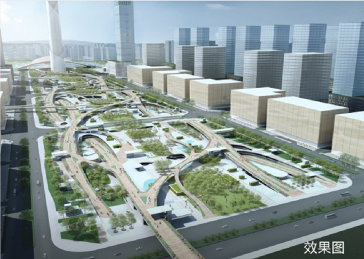 世界建筑大师矶崎新主持规划设计,引入“流动体”概念,空中廊道、景观公园、下沉广场、交通枢纽、商务商业无缝连接,比肩纽约曼哈顿的中央公园。