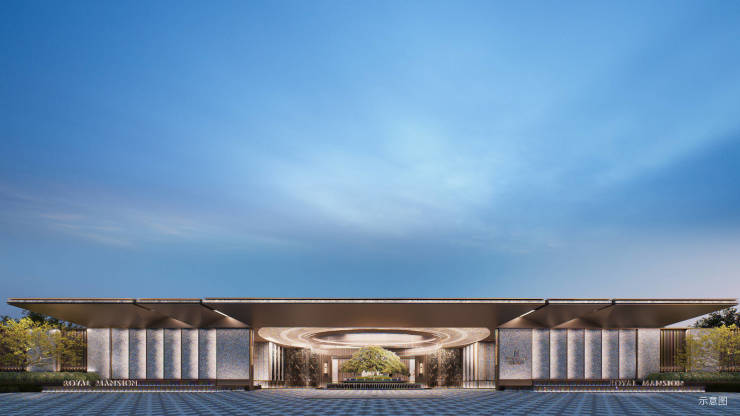 奢阔尺度门庭,星空穹顶、羽毛枫造景,精选海浪灰、古铜金等色彩,立新城市门面。