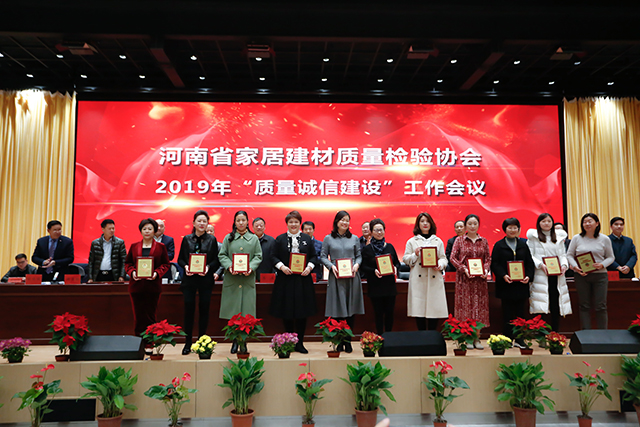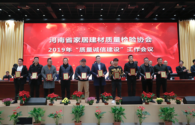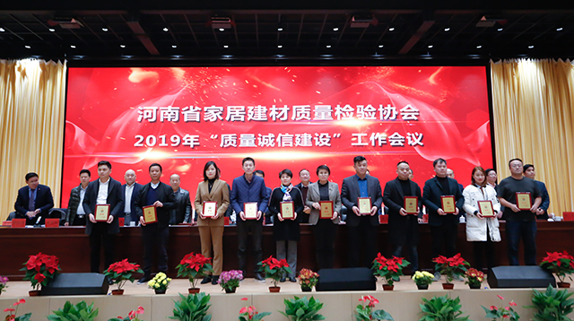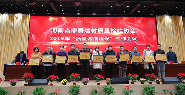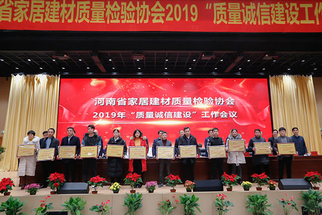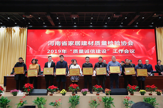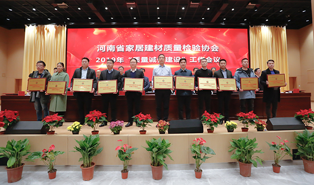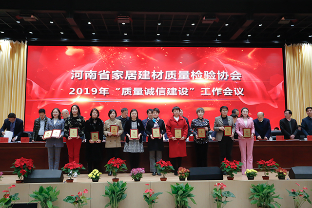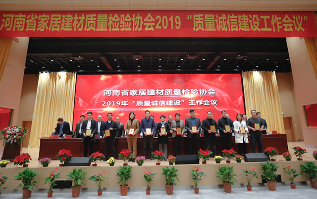 同时,为加强家居建材行业企业质量诚信建设,增强会员企业的诚信意识,进一步推进河南社会信用体系建设,2019年围绕质量诚信建设工作,广大会员单位积极参与培训,认真学习、贯彻、制订、落实各项内部管理制度,不断完善内部质量管理体系,在经济和社会发展中发挥了积极作用,树立了良好的形象,取得了较好成效的“质量诚信建设”工作先进单位及“质量放心产品”企业予以表彰。河南省家居建材质量检验协会主任张自端宣读豫建检协字【2019】11号文,关于表彰2019年度“质量诚信先进单位”及“质量放心产品”单位的决定。