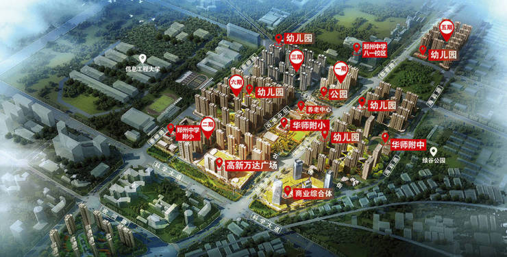 【万华城】项目划片郑州中学八一校区(已开学)、郑州中学附属小学万华城学校(暂定名)、华中师范大学附属启新实验中学、华中师范大学附属金竹街小学、社区品牌幼儿园等优质教育资源,郑州枫杨外国语、解放军信息工程大学等名校环绕,一站式教育助力孩子未来。