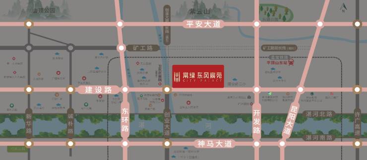 项目位于建设路和创业大道交会处,作为市政主干道的建设路,地位就如同北京的长安大街和郑州的金水路,承载着一座城市的文化和灵魂。建设路东西长超30公里,横跨新城区、湛河区、新华区、卫东区,往东连接许广高速,往西连接高铁站。
