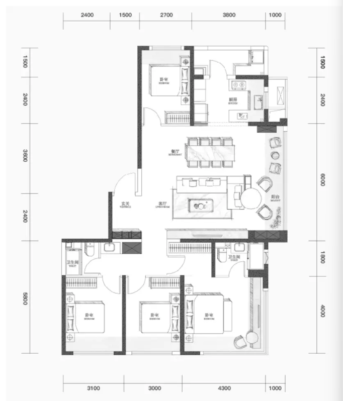 建面约148㎡ 奢阔四房(小高层)