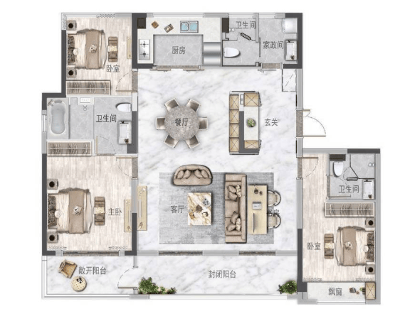 洋房产品以精装修交付,旨在提供高品质的“拎包入住”体验。其设计亮点突出,如约13.7米南向大面宽、3.2米层高、入户双玄关及洄游双动线。约160㎡户型更具备 “双套房” 与独立家政间设计,空间功能完备,尺度舒阔,其舒适度与仪式感可比肩平层大宅,是追求精工品质与便利生活的终极改善之选。